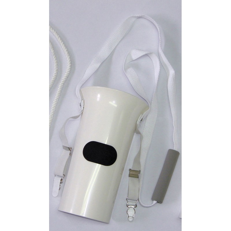 Enrolle el calcetín o media y póngalo alrededor del ayudador por la parte que no tiene los tirantes. Apriete el calcetín o medio con los tirantes adicionales laterales.