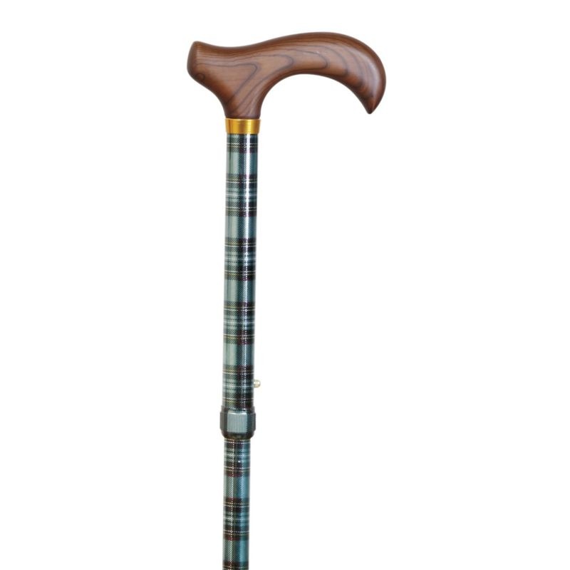Elegante Bastón con Diseño Inglés. Plegable y Ajustable a la altura. Tubo de Aluminio y Empuñadura de Madera.