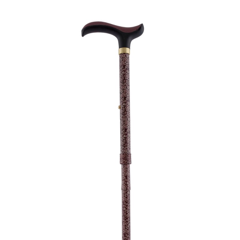 Este Bastón plegable está fabricado en aluminio. El tubo es marrón con estampado de flores. empuñadura de Tacto Suave