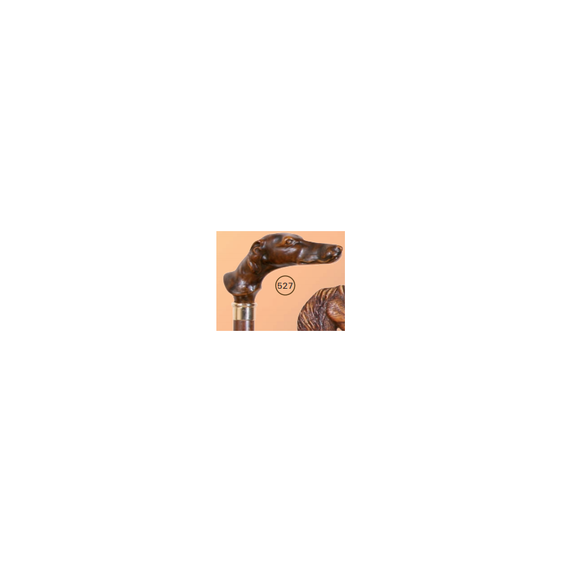 Este bastón está fabricado con palo de haya y puño cabeza de perro imitación madera.