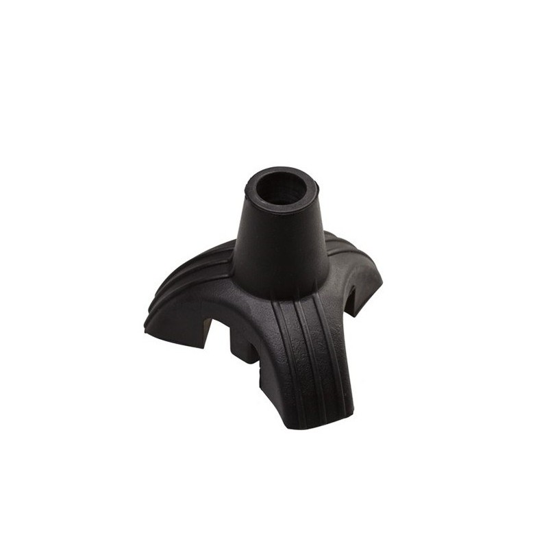 Contera de goma con base trípode. Su diseño permite que el bastón pueda permanecer en vertical en la mayoría de situaciones. Su gran base antideslizante da más seguridad y estabilidad impidiendo que en zonas de arena, de barro o húmedas se hunda el bastón. Fabricado en caucho y con un anillo de metal interior. Base metálica interior.