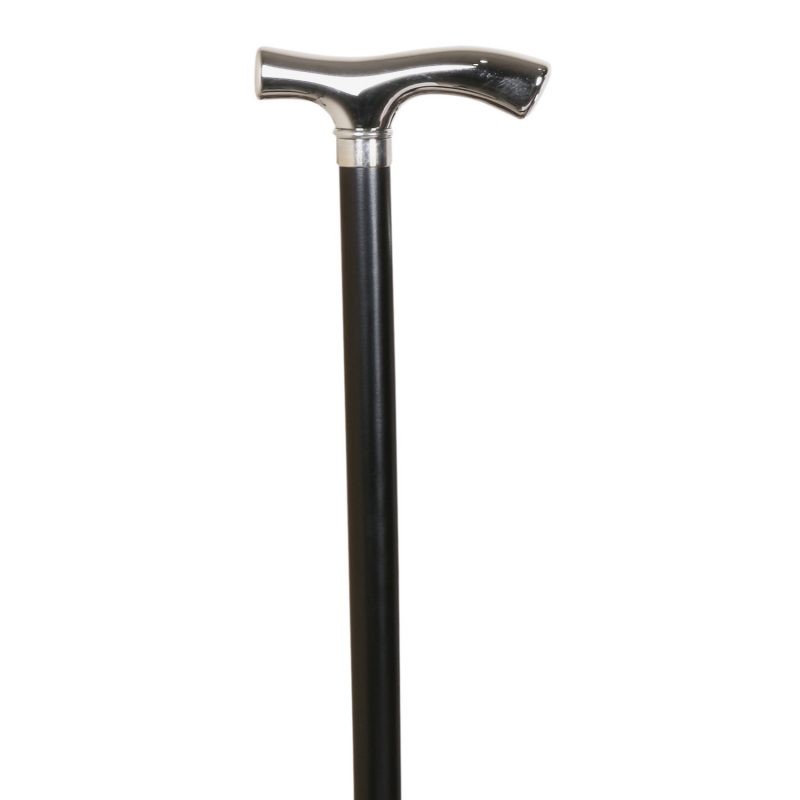Este Bastón está fabricado en Madera Haya. La empuñadura está niquelada y el tubo es de color negro. Altura 92cm.