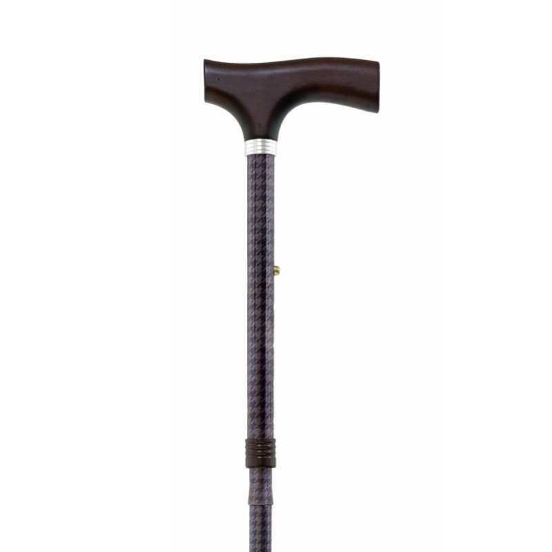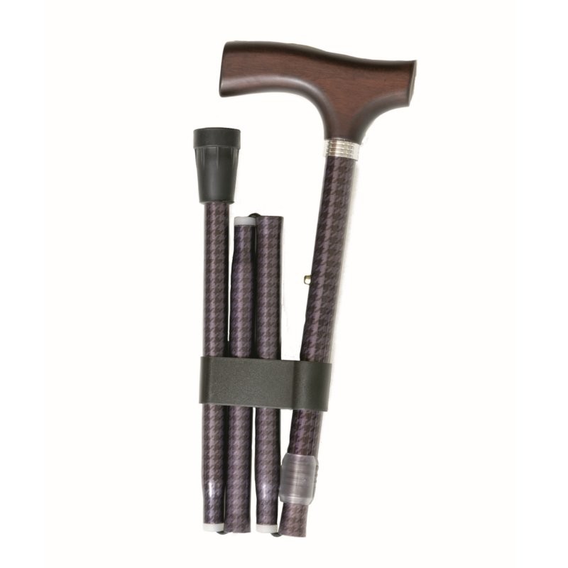 Bastón Plegable y Ajustable en su Altura, de Aluminio Estampado, con Empuñadura de Madera. Fabricado en España