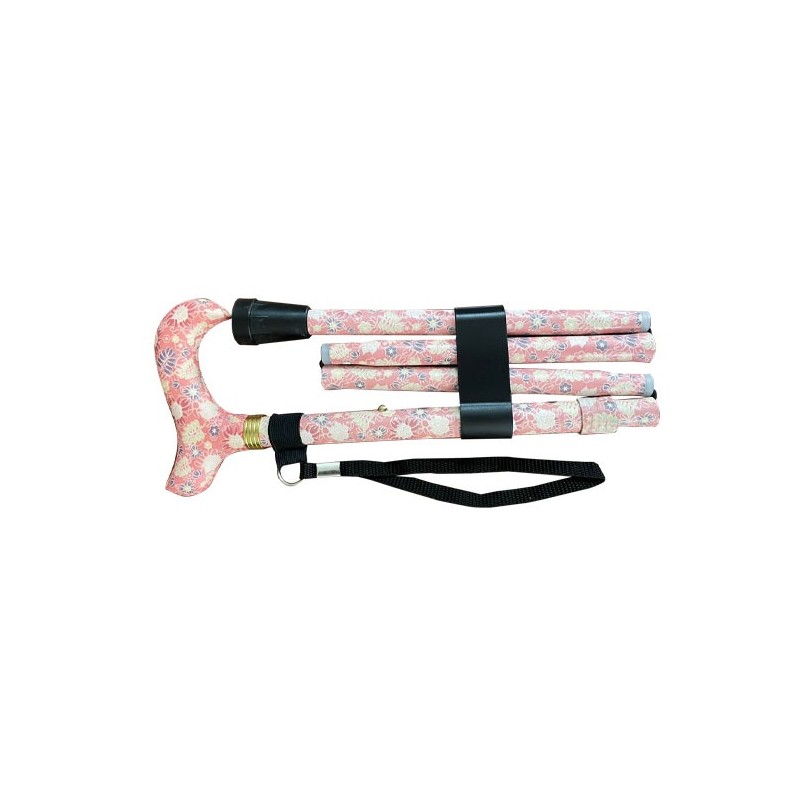 Este Bastón plegable está fabricado en aluminio. Tanto el tubo como el puño tienen estampado de rosas. Sus características principales son las siguientes: