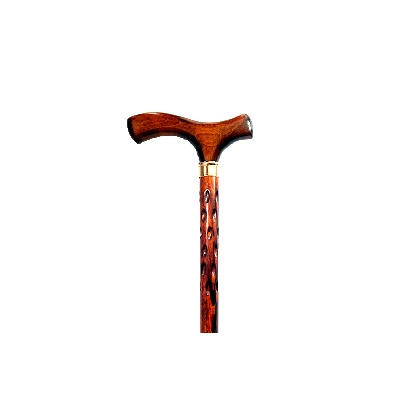 Este Bastón de caballero café con anilla está fabricada en haya (madera) tallada. Sus características principales son las siguientes: