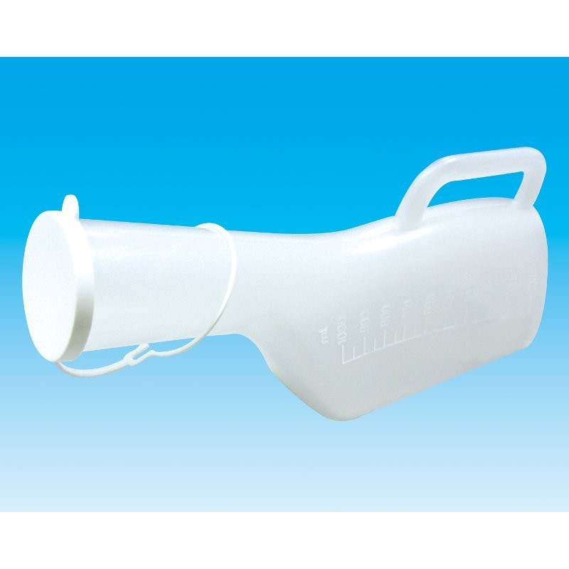 Este orinal masculino con tapa tiene forma anatómica y una boca diseñada para evitar daños al usuarios. Su utilización es de sobra conocida para varones enfermos postrados, son el fin de facilitarles la micción.