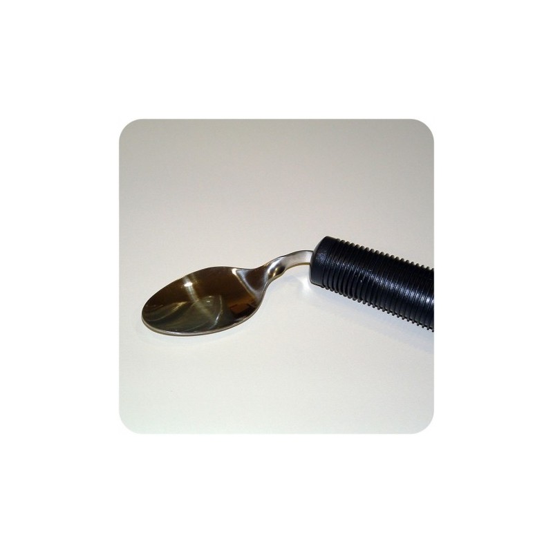 El Tenedor y la Cuchara están fabricados en acero inoxidable con mango de plástico cubierto de goma, el cual proporciona un tacto más agradable. El tamaño grande de la empuñadura permite un agarre cómodo y seguro para las personas con dificultad en sus movimientos. Se puede doblar en diferentes sentidos y grados de ángulo para que se pueda utilizar cómodamente ya sea para una persona diestra o zurda o con cualquier tipo de dificultad en movimiento de manos, dedos o muñeca.