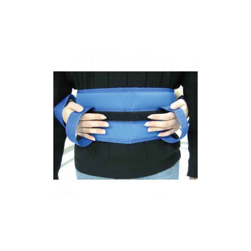 Este cinturón de transferencia está diseñado para ayudar a levantar a personas de la cama, silla, silla de ruedas o trasladarlas a corta distancia. Incluye cuatro cintas de sujeción de seguridad para el traslado. El cinturón se ajusta y abrocha alrededor de la cintura del usuario.