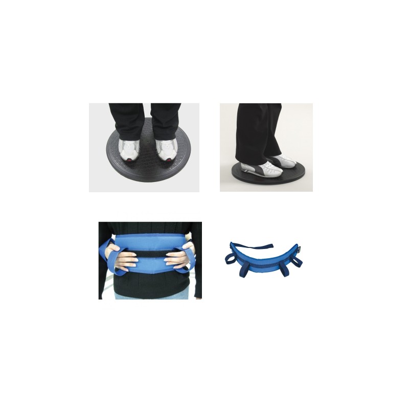Conjunto de dos productos complementarios de alta calidad, destinados a facilitar y mejorar la transferencia de pacientes o familiares desde la cama, silla, silla de ruedas o trasladarlas a corta distancia.