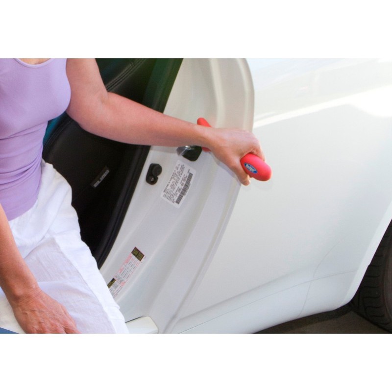 El Handy Bar hace que sea fácil entrar y salir del auto. Simplemente deslice la manija dentro del cerrojo / pestillo de la puerta para obtener un apoyo adicional mientras está sentado o parado. Se adapta a cualquier puerta, por lo que puede tener un soporte extra en cualquier lugar del auto, sin importar donde vaya sentado. Cuando haya terminado, simplemente saque el Handy Bar de la puerta, guárdelo en su auto y estará listo para partir.